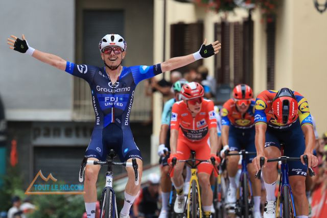 Déjà Troisième avant-hier à Limone Piemonte, David Gaudu (Groupama-FDJ) avait une revanche à prendre sur ses adversaires. Ainsi, mardi le Français avait bien étudié l’ascension de Ceres, théâtre d’un final punchy pour la dernière arrivée italienne de La Vuelta 25. Bien emmené par son coéquipier Giulio Ciccone (Lidl-Trek), le grand favori Mads Pedersen a vu Gaudu lui faire l’intérieur par la droite dans le dernier virage, à 50 mètres de la ligne. Le « Petit prince de Bretagne » s’impose pour la troisième fois sur la course après ses deux succès acquis en 2020, devançant les Danois Pedersen et Jonas Vingegaard (Visma - Lease a Bike). Ce-dernier conserve La Roja, même si Gaudu est dans le même temps au classement général, avec Giulio Ciccone (Lidl-Trek) troisième à 8 secondes.