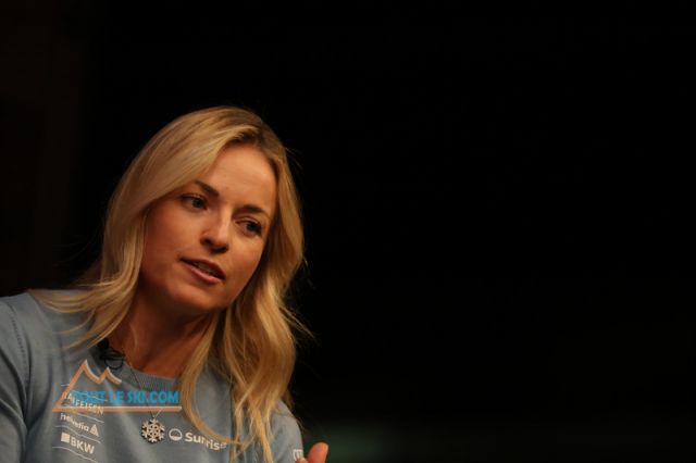 En photo (Teyssot/AS/TLS) La Tessinoise résidente italienne Lara Gut-Behrami lors du Forum Alpinum de Sölden.